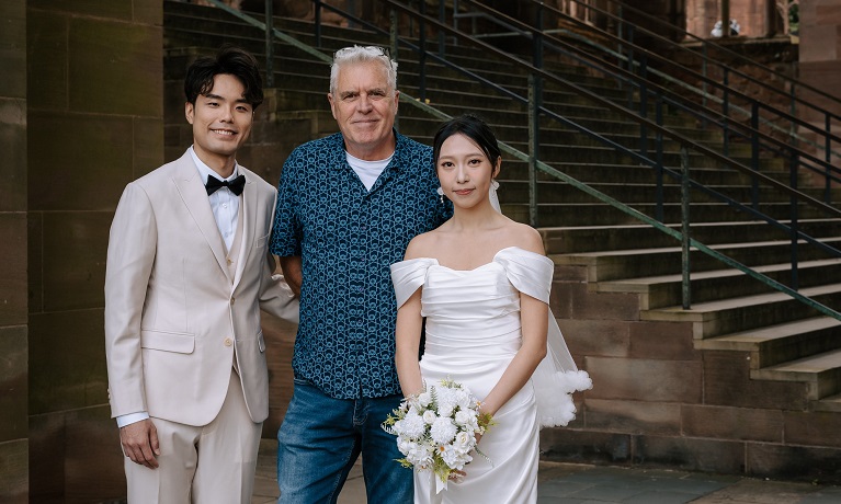 The couple – who met while playing for Coventry University’s badminton team – flew nearly 10,000km and donned stunning wedding outfits as they posed for engagement photographs in the city ahead of their big day in January 2026 back home in Hong Kong.